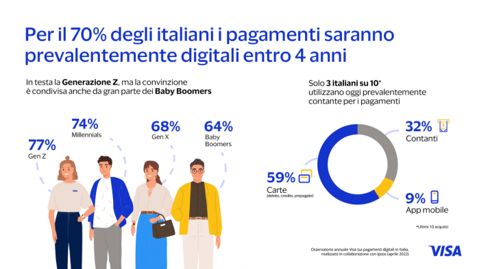 L’Osservatorio Visa, ha realizzato insieme a Ipsos uno studio che indaga, su un campione di popolazione composto da quasi 1800 individui, di età compresa tra i 18 e i 64 anni di età, sulla percezione e le aspettative dei consumatori italiani rispetto ai pagamenti e ai nuovi trend di acquisto digitali.