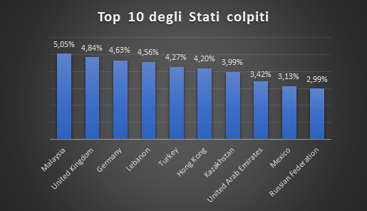 La distribuzione geografica degli utenti colpiti, rilevata da Kaspersky Security Network (KSN) durante questo periodo, mostra che quasi la metà (più del 40%) viveva nei seguenti Paesi:
