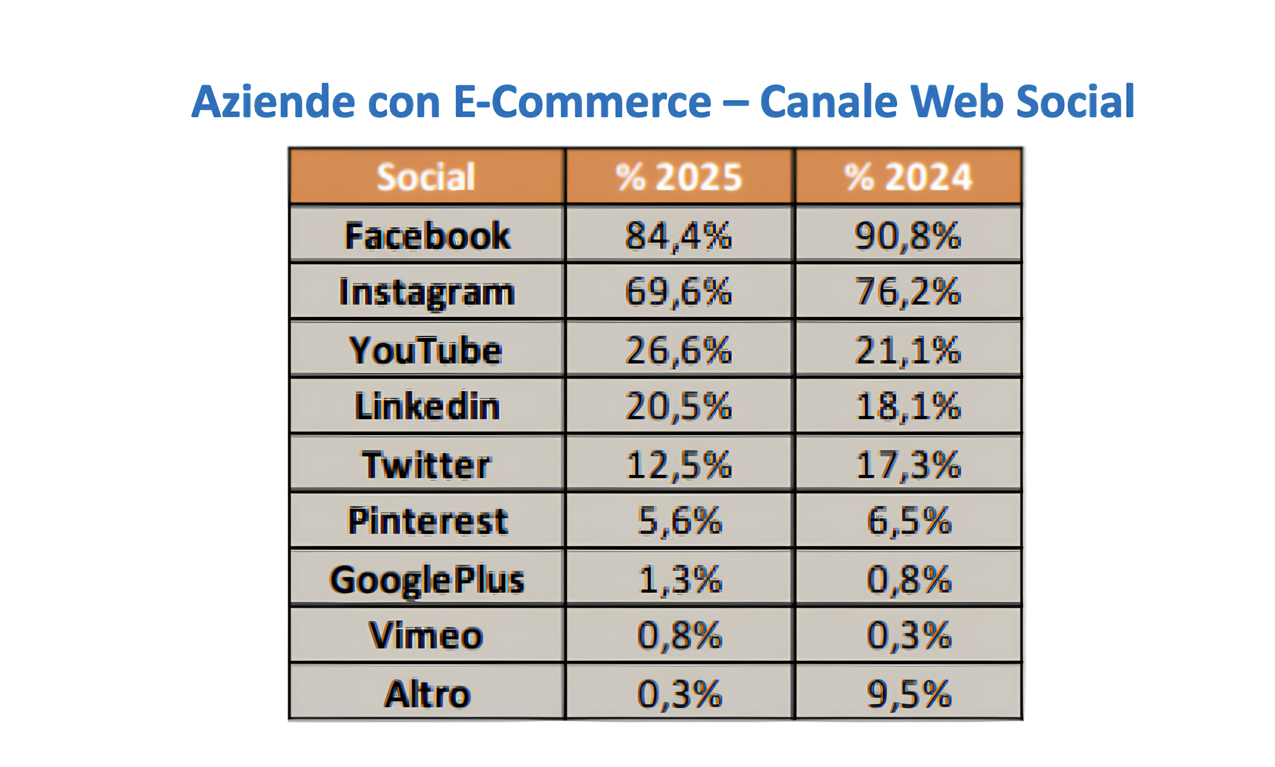 Sul fronte della comunicazione digitale, emerge la forte presenza delle aziende e-commerce sui social media, ormai strumenti indispensabili per la promozione e il customer engagement. In particolare, l’82,7% delle aziende analizzate possiede almeno un social network. Di queste, l’84,4% ha un canale Facebook e il 69,6% è attivo su Instagram. Gli altri social media che superano la soglia del 10% sono YouTube, Linkedin e X.