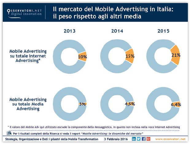 Dal lato della domanda, invece, i principali investitori sono Mobile Content & App provider, pure player eCommerce, aziende dei settori automotive, telco e entertainment, ma gli investimenti stanno crescendo sostanzialmente ovunque. Grazie al lavoro fatto da molte aziende nel corso del 2015 per rendere i propri siti responsive, si sono create le basi per uno spostamento più deciso dei budget verso il Mobile nei prossimi anni.
