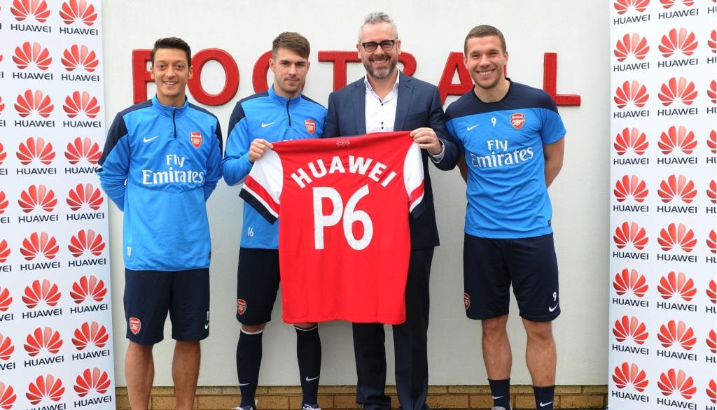 Mesut Özil, Aaron Ramsey, Mark Mitchinson and Lukas Podolski welcome Huawei