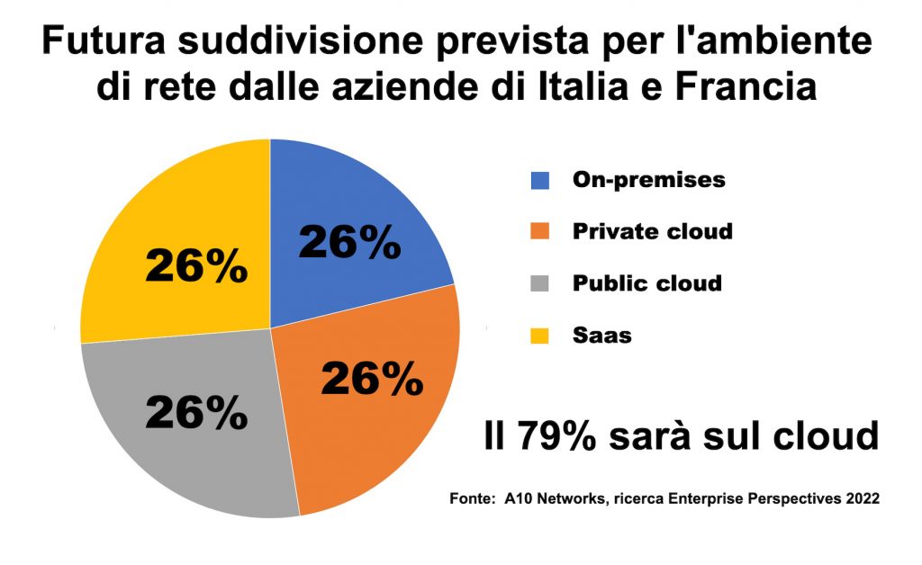 Alla domanda sulla ripartizione prevista del loro futuro ambiente di rete, il 79% delle organizzazioni aziendali dell’Europa meridionale ha dichiarato che sarà basato sul cloud con il 26% che ha indicato il cloud privato come ambiente preferito. Tuttavia, non sono rassicurati dai loro fornitori di servizi cloud, con il 40% che dichiara che non riescono a soddisfare i loro SLA.