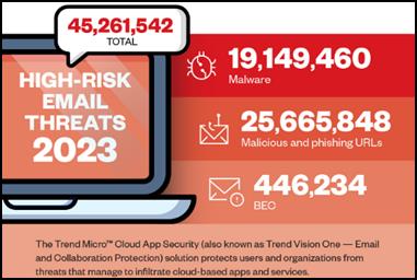Trend Micro ha bloccato 45.261.542 email ad alto rischio nell’anno 2023. Il dato emerge dall’ultimo Email Threat Landscape Report e dimostra come la posta elettronica, nonostante i quasi 50 anni di età, rimanga lo strumento di comunicazione più utilizzato al mondo e di conseguenza uno dei punti di accesso principali per gli attacchi informatici