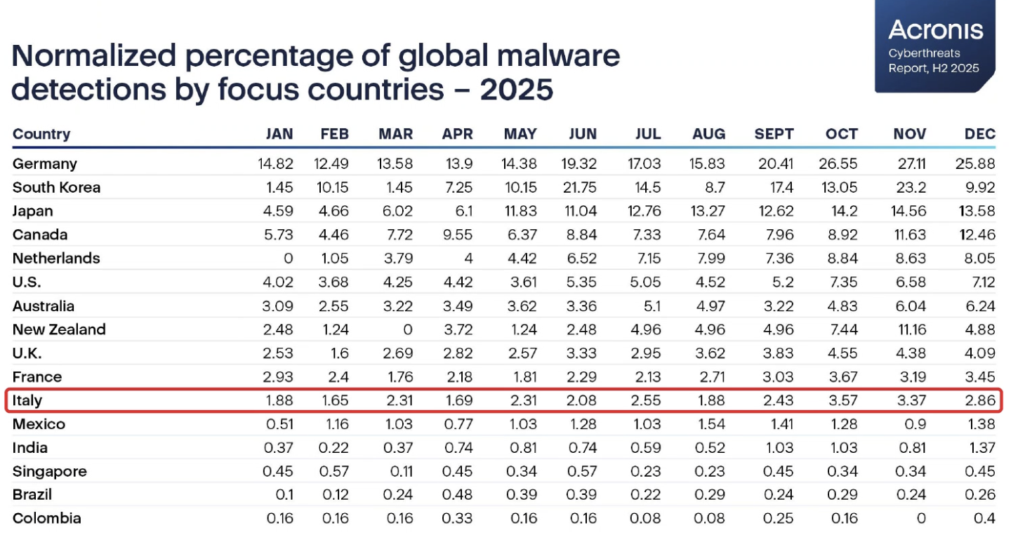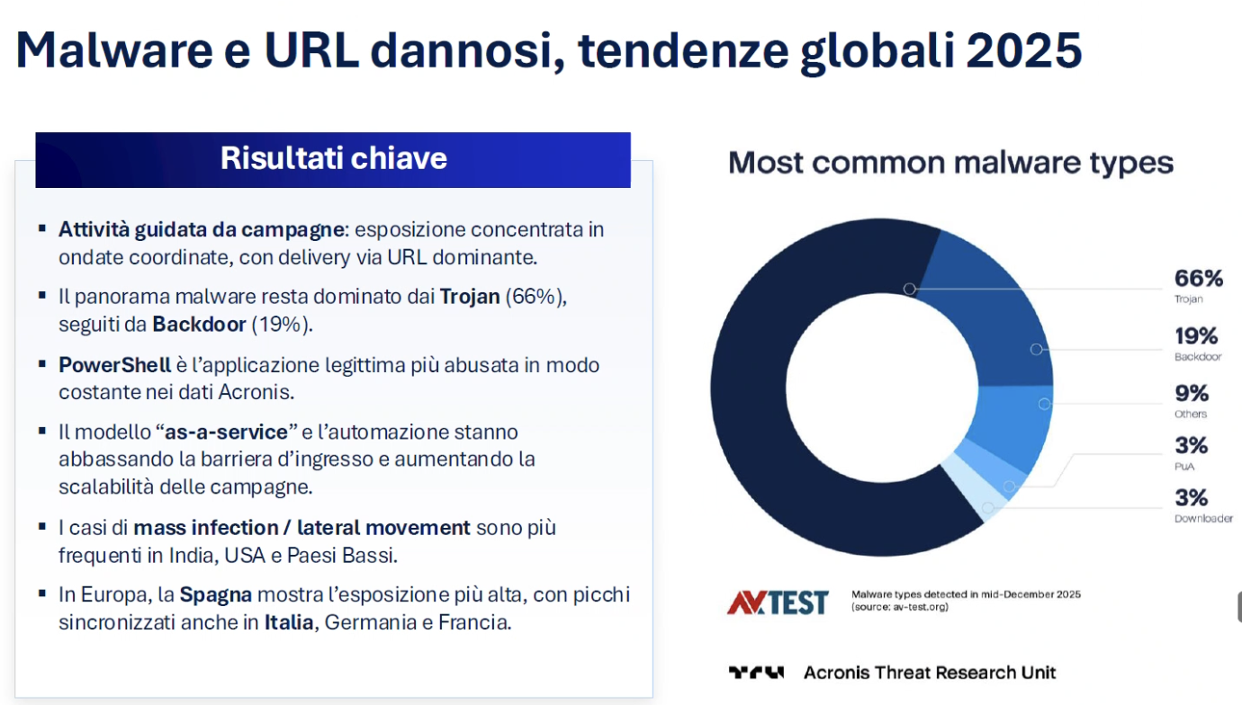 Il panorama della cybersecurity globale sta attraversando una trasformazione profonda. Non si tratta più soltanto di un aumento del numero di attacchi informatici, ma di un cambiamento strutturale nel modo in cui il cybercrime opera: più automatizzato, scalabile e organizzato come una vera industria. Non solo: le minacce cyber non sono più eventi isolati, ma campagne coordinate progettate per generare impatti sistemici su interi ecosistemi economici. È questo quanto emerge dall’analisi sul secondo semestre del 2025 presentata dagli esperti di Acronis, basata sulla telemetria raccolta da oltre un milione di endpoint a livello mondiale.