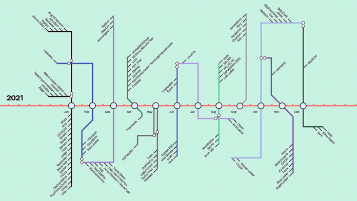 - Nel 2021 il ransomware ha continuato a colpire una varietà di settori e ha utilizzato diversi metodi per penetrare le difese, per cui nessuna organizzazione poteva essere considerata esclusa da questi attacchi.
