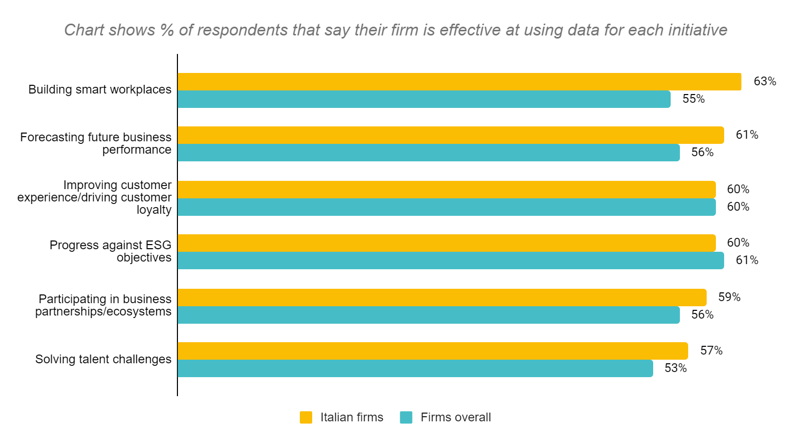 Rispetto alla media globale, le aziende italiane sono più propense a utilizzare i dati per migliorare parametri relativi al business.