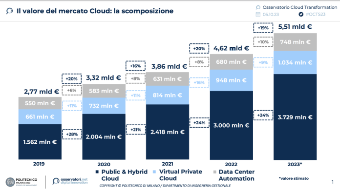 Sono questi i dati emersi dall’Osservatorio Cloud Transformation, giunto alla sua tredicesima edizione e promosso dalla School of Management del Politecnico di Milano.