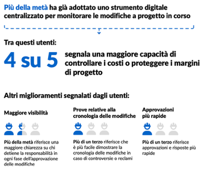 Questi sono i risultati dell’analisi Managing Project Changes in the Age of AIche analizza le modalità per fronteggiare le due sfide operative più significative per i project manager dell’edilizia, in quanto generano sostanziali superamenti di budget: mantenere i progetti nei tempi previsti e gestire le richieste di modifica pervenute a progetto in corso. È proprio su questi aspetti che il 58% degli intervistati ritiene che l’AI possa fare la differenza e rappresentare una soluzione concreta in un contesto ad alta pressione e con risorse limitate.