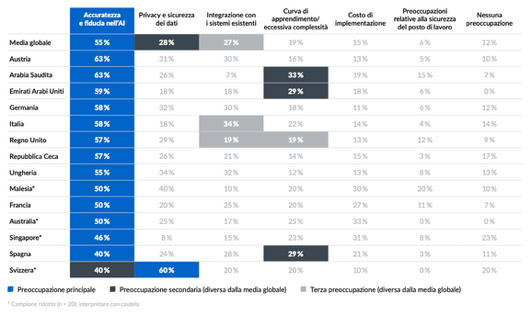 In Italia, come su scala internazionale, per oltre la metà degli intervistati la principale preoccupazione che frena l’adozione di strumenti di intelligenza artificiale nel lavoro quotidiano di project management è costituita dalla loro accuratezza e dall’affidabilità dell’AI. A differenza della tendenza generale degli altri paesi, in Italia l’integrazione con i sistemi esistenti è invece il secondo ostacolo più rilevante (34%), seguito dalla difficoltà di apprendimento, una preoccupazione che accomuna il 22% del campione. In controtendenza rispetto ai risultati globali, secondo cui privacy e sicurezza dei dati rappresentano il secondo ostacolo all’adozione di strumenti di AI (28%), in Italia il tema è meno sentito (18%). Infine, solo il 4% cita il timore di perdere il lavoro, un dato di 2 punti percentuali al di sotto di quello globale.